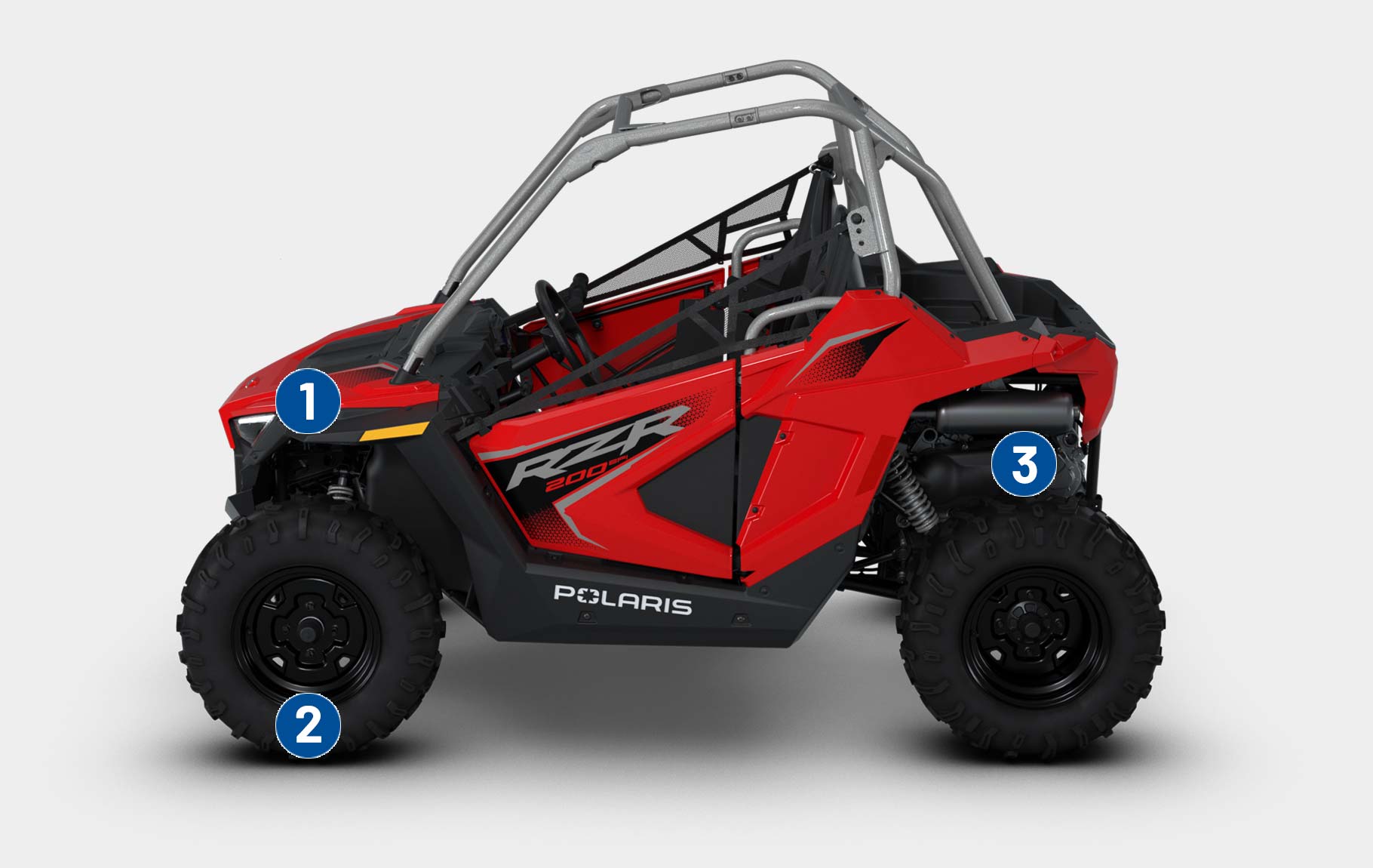 Med 180 cc EFI-motor, justerbart säte och ratt, passagerarsäte och tillbehör kan yngre förare växa med sin side-by-side. Tillverkad för förare från 10 år och uppåt.