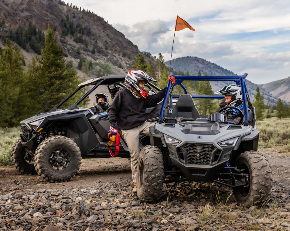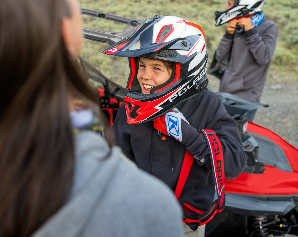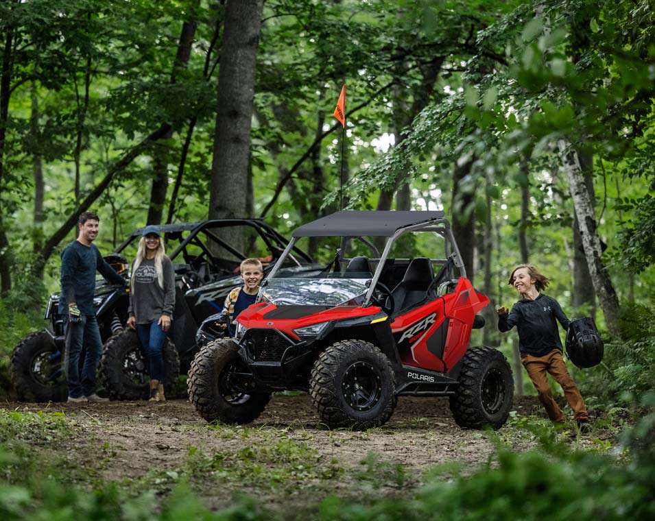 Du kan känna dig trygg när du vet att RZR har branschledande säkerhetsfunktioner. som start med pinkod, justerbar hastighetsbegränsare, geofencing, skyddsnät, branschexklusivt säkerhetspaket och hjälmkänslig teknik.